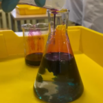 Neljandas katses uurisime mangaani oksüdatsiooniastme muutumisel kaasnevate värvide vahetumist. Tulemuseks muutus koonilisse kolbi lisatud lillat värvi lahus alguses tumeroheliseks, siis punakaspruuniks.