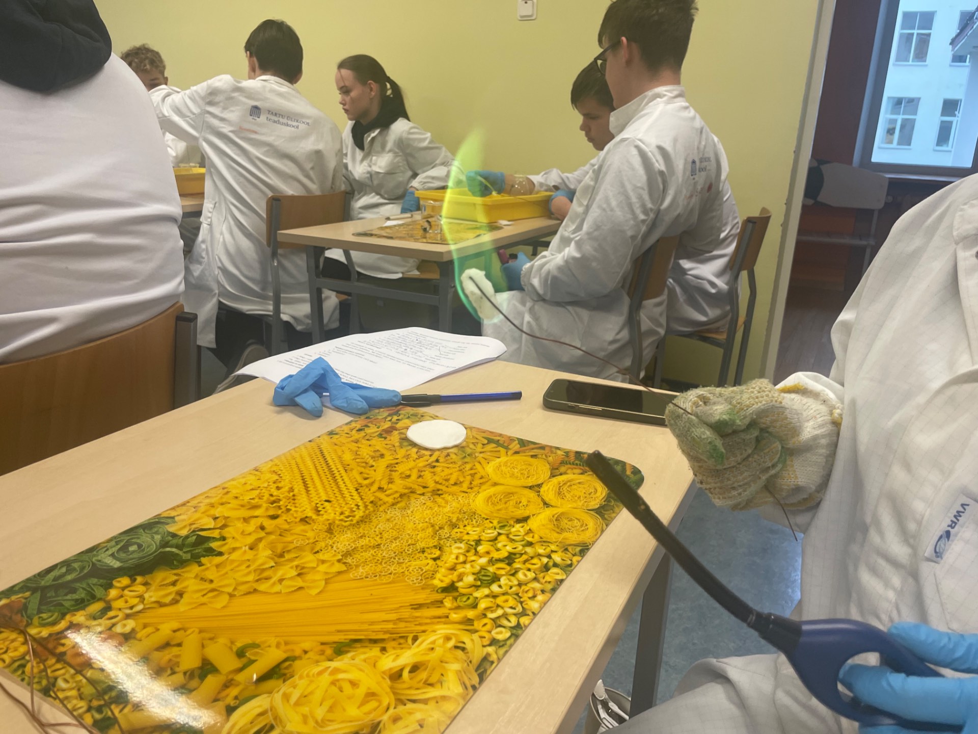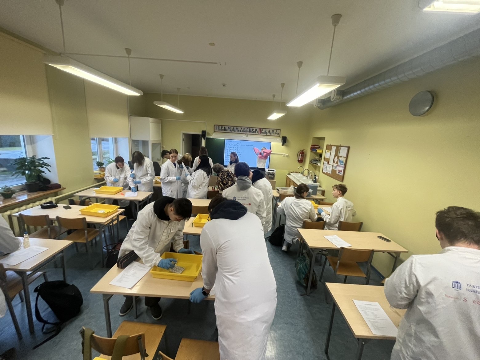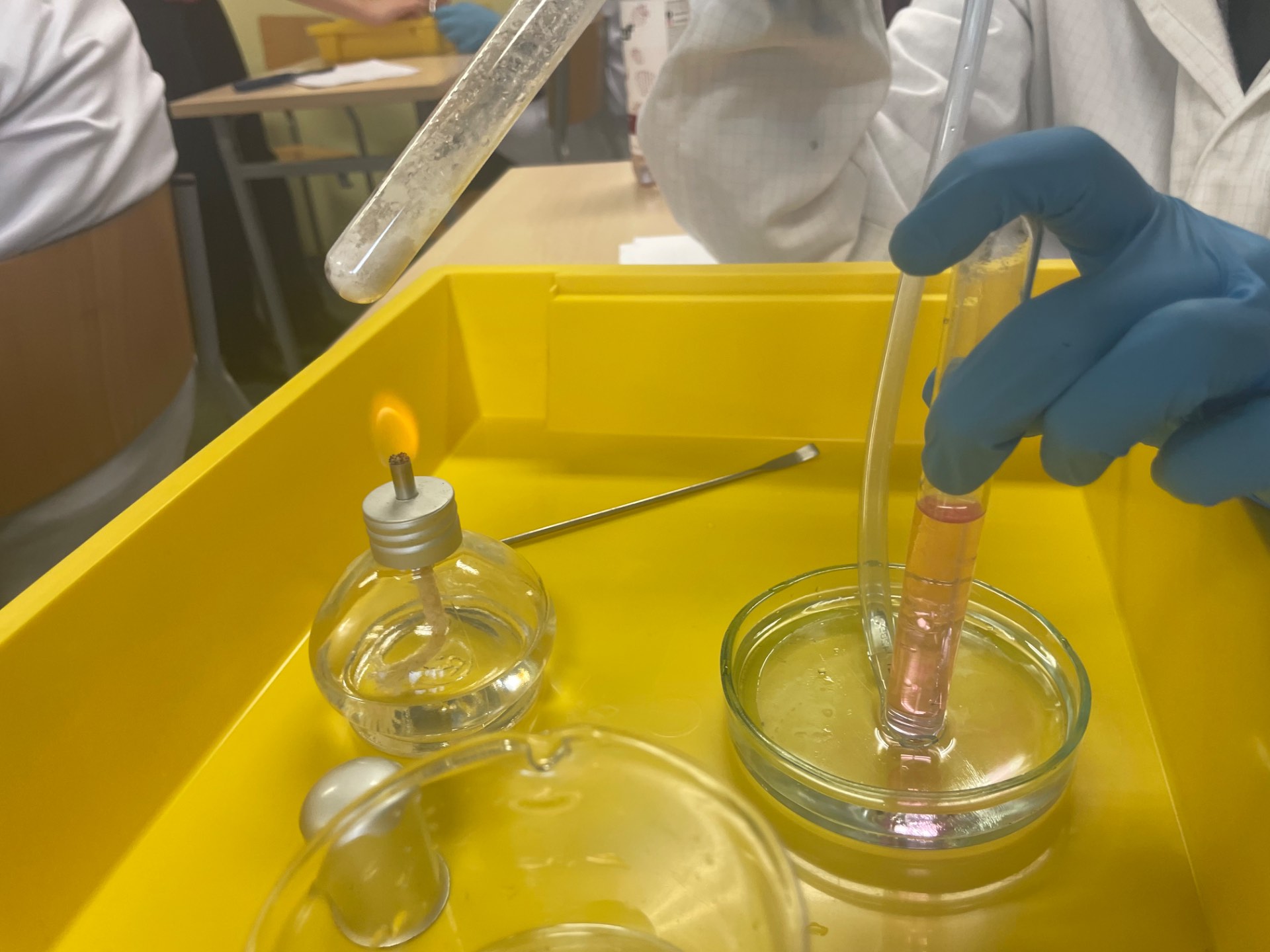 Teisipäeval, 2. detsembril toimus anorgaanilise keemia õpikoda, kus tegime neli erinevat katset. Nendeks katseteks olid reaktsioonide tunnused, värvilised leegid, ammoniaagi saamine ja värviline kameeleon. Õpikoja viisid läbi Tartu Ülikooli tudengid Madli ja Laura, kes juhendasid katsete läbiviimist.Esimeses katses uurisime reaktsioonide tunnuseid. Panime tilgaalusele lahuseid ja vaatlesime milliseid reaktsioone tekkis, nt sademed ja värvuse muutus.